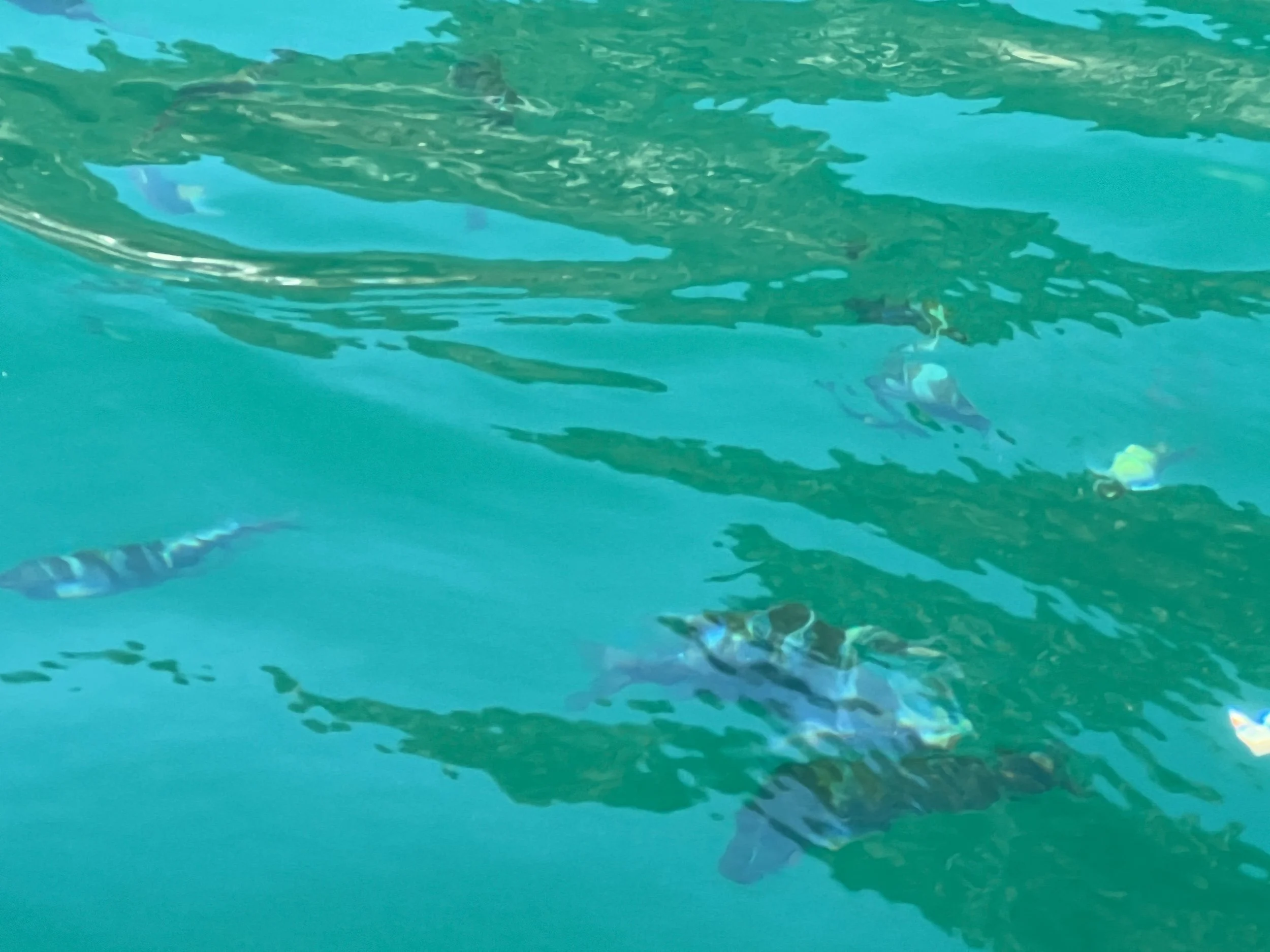 The water in the Sea of Cortez is so clear that you can see the fish swimming close to the surface. Of course, the boat crews also throw pieces of tortilla into the water to encourage the fish to swarm close to their boat for the tourists to see and photograph.