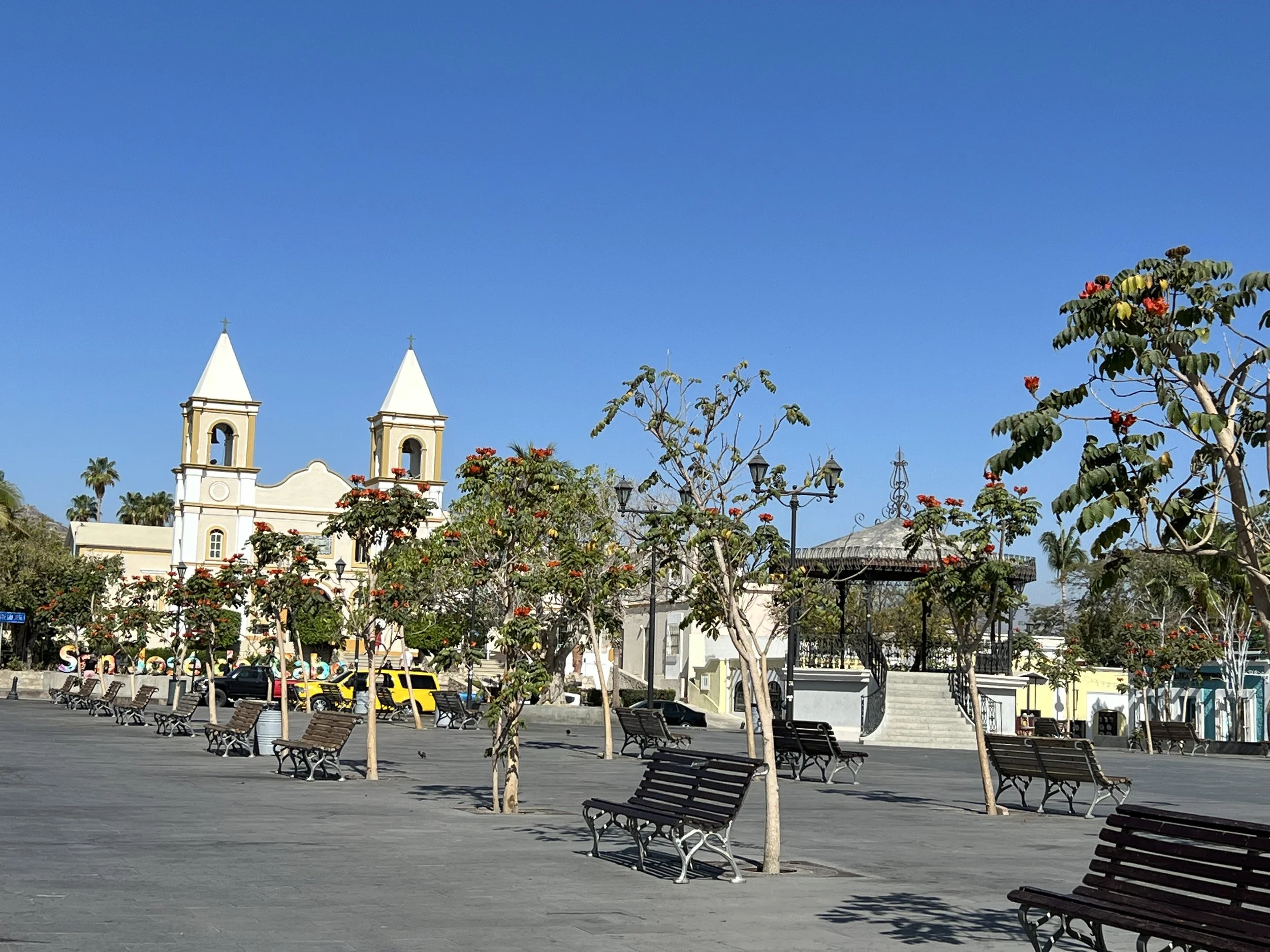 The town square in San Jose is dominated by the Mission of San Jose del Cabo Anuiti, the southernmost of the Jesuit missions established during Mexico’s colonial period in Baja California. The original mission dated back to April 8, 1730. Unfortunately, nothing remains of this thanks to native uprisings and fire. The current version was rebuilt in 1940.