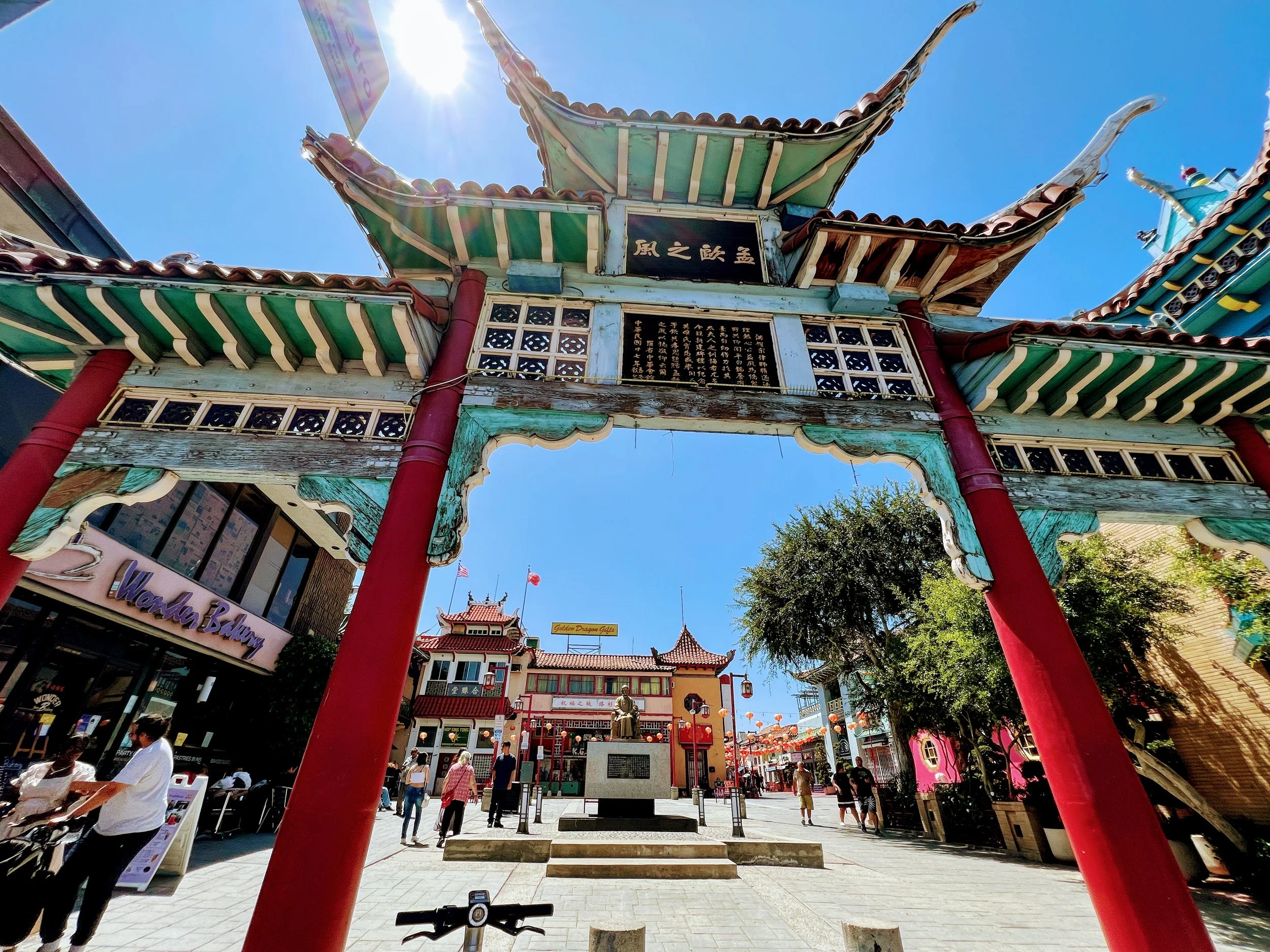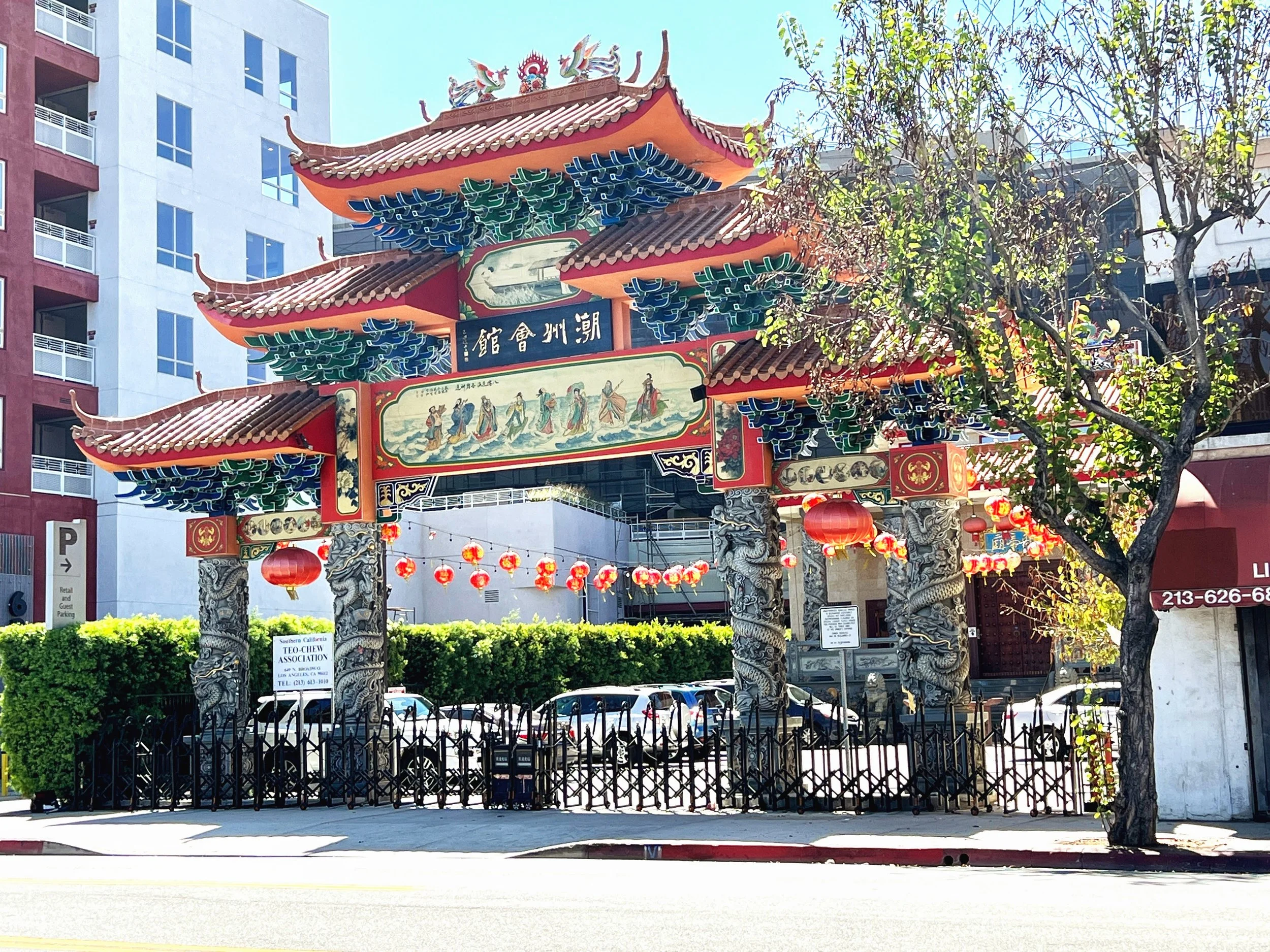 Twin Dragon Gateway that welcomes visitors to Chinatown Los Angeles.