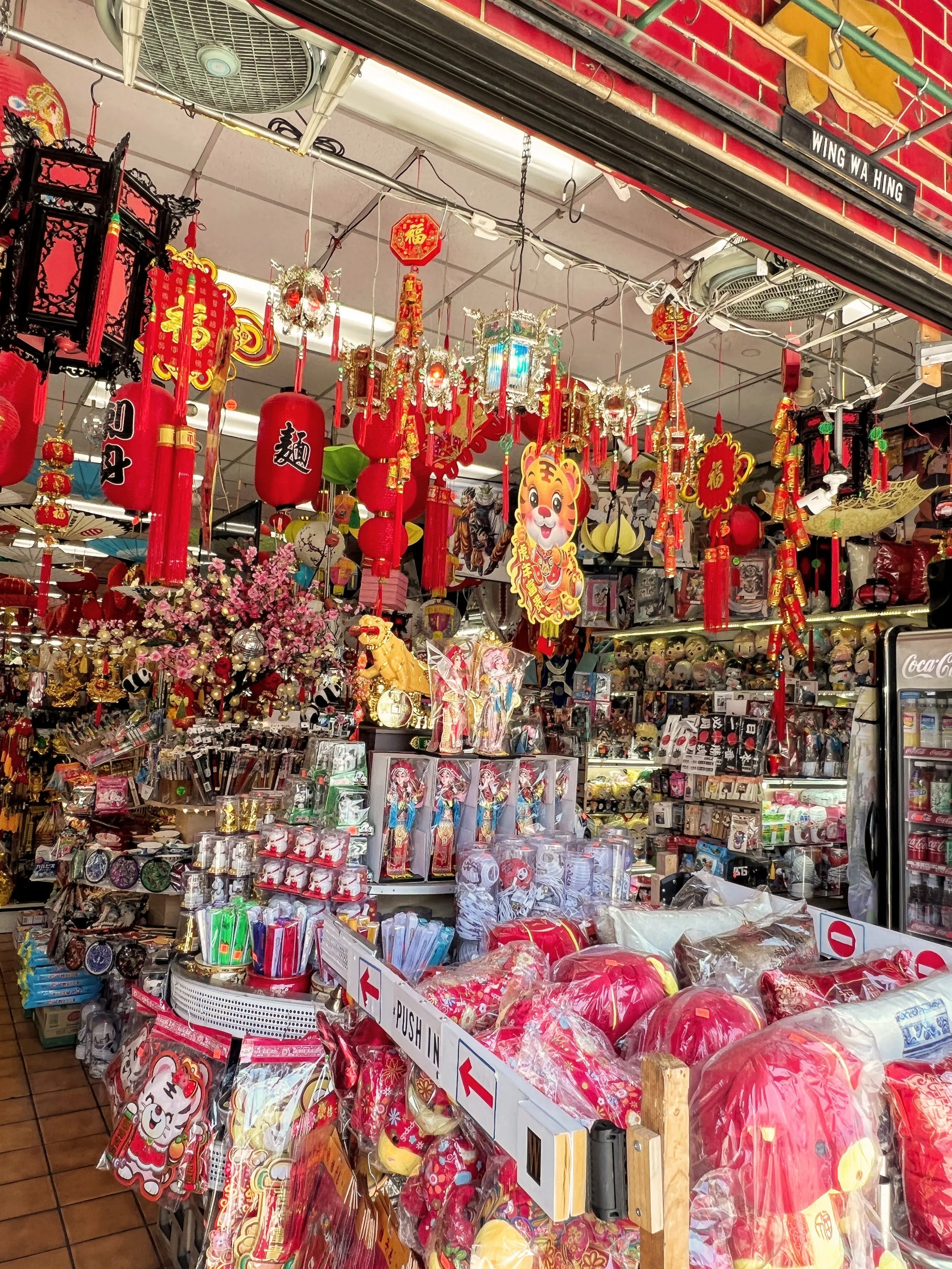 Colorful shops selling all manner of Chinese goods and foods in addition to the variety of Chinese restaurants that did a brisk business.