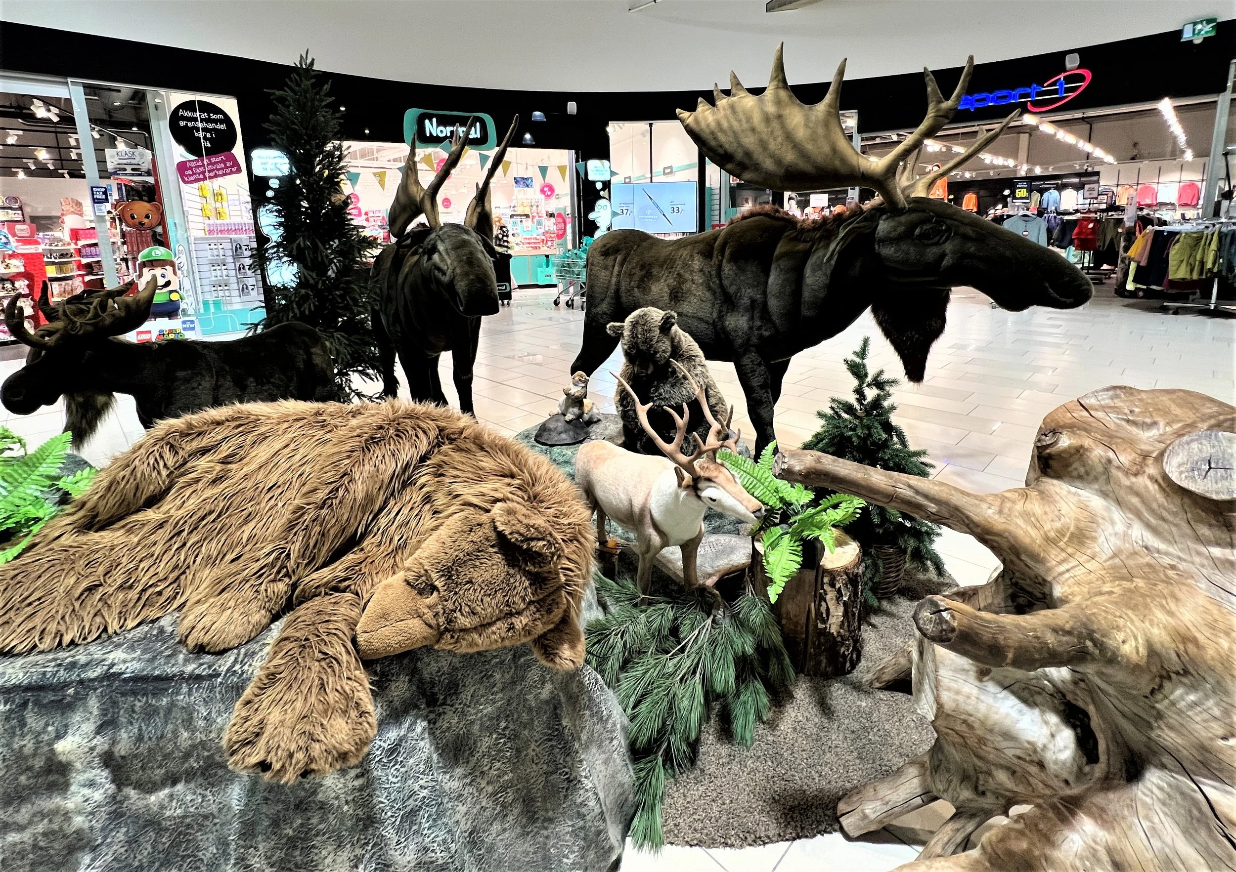 Other than cows and sheep we really did not see any moose or reindeer or other animals in the wild. This restroom stop at a local mall was the closed we came to seeing these animals in a simulation of their natural habitat.