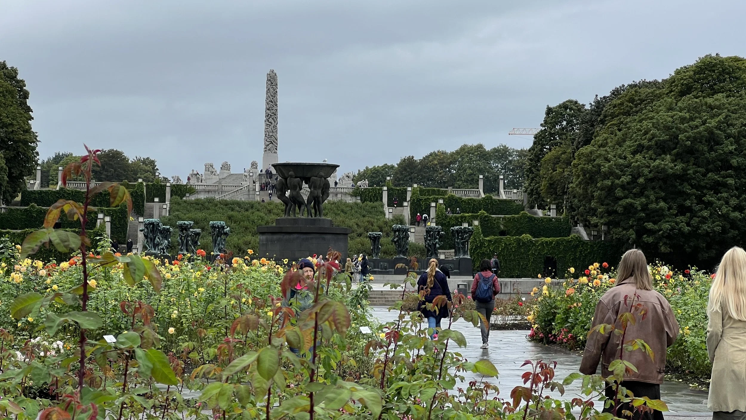 Oslo, the capital where we got to do a drive around and a walk around some of the noted milestones in the city. The most impressive was the Vigeland Sculpture Park with its disturbing sculptures set amongst beautiful flowers.